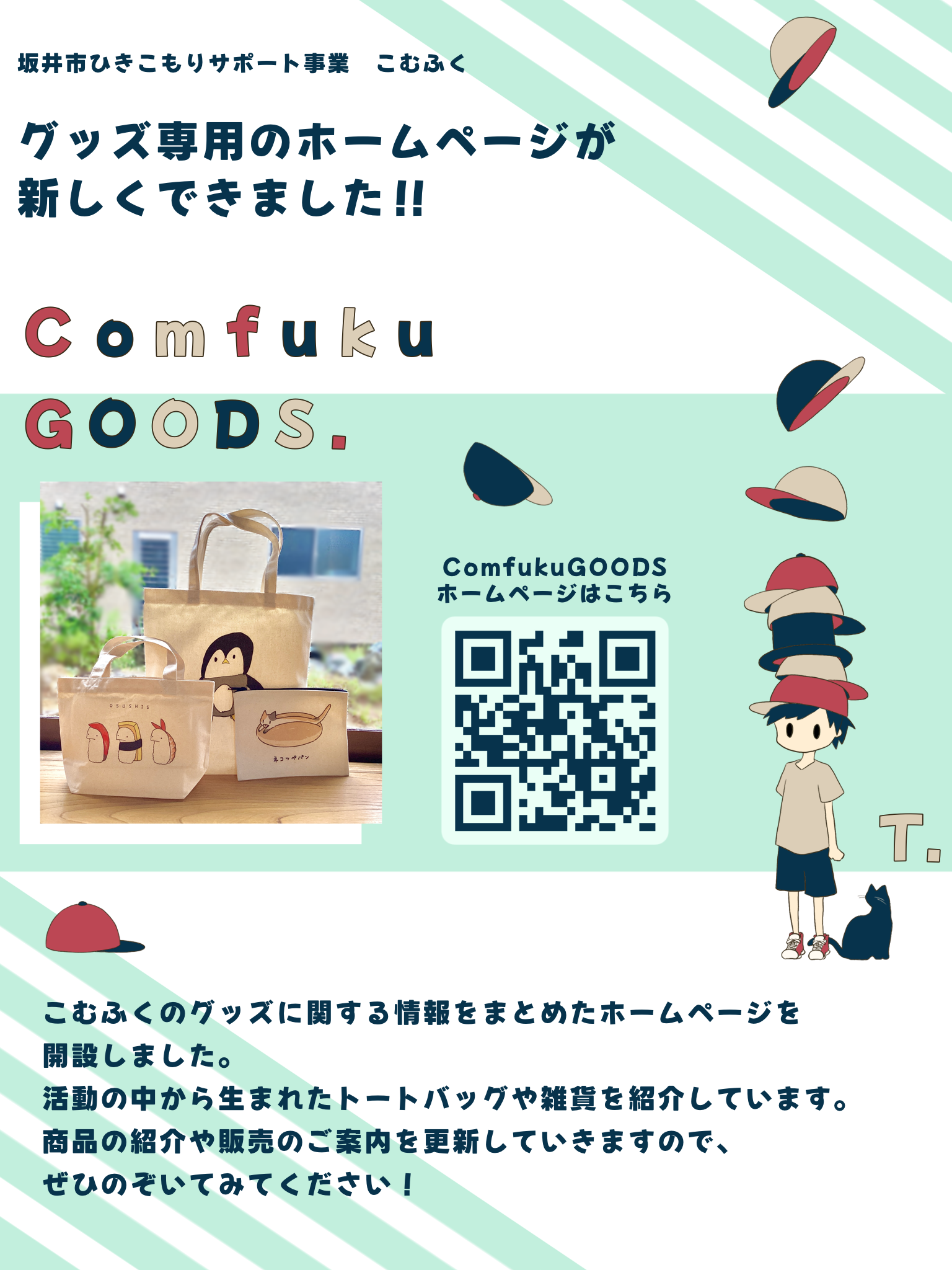 こむふくで作っているグッズのホームページとInstagramができました こむふくでは利用してくれている方とオリジナルグッズ作り、販売をしています。 そのホームページとInstagramができましたのでお知らせします。ぜひ見ていただけると嬉しいです! ホームページはこちら Instagramはこちら @comfukugoods